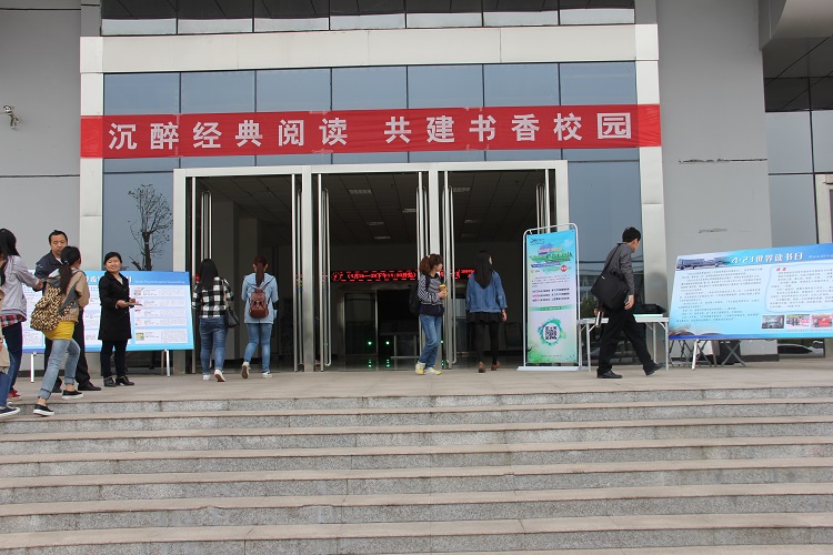 4月25日上午,图书馆学术信息部工作人员在图书馆一楼门厅举行阅读推广读书宣传活动。
